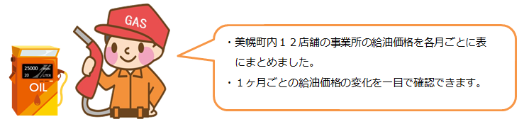 美幌町内にある大型3店舗(各商品の価格動向)、12ヶ所の給油所(灯油・ガソリン・LPガスの価格動向)