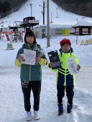 今年初めての技術選手権大会に出場。チームからは、2名出場しました。雪が降る中、視界の悪い状況でしたが、頑張ってくれました。大会結果は、小学男子の部にて芳賀奏太君1位、長嶋幸明君2位の結果でした。